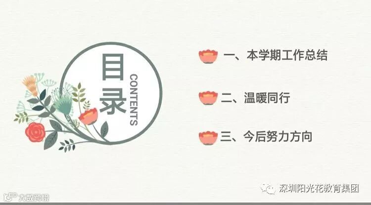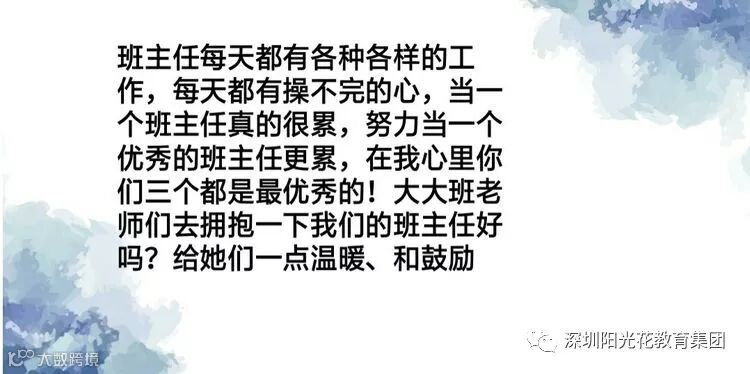 美丽与智慧共存的园长姐姐:纵然回首,半年的时光匆匆而过。回想每个人甚至每天、每个活动都有让我感动的人和事。感动我们大家在一起的和谐、温馨;感动大家的开诚布公,坦诚相见;感动我们教师同舟共济,奋进拼搏;感动我们大部分老师以身作则,顾全大局;感动大家的任劳任怨,无私奉献……半年来,我们在各自的岗位上,兢兢业业,任劳任怨,有欢笑、有烦恼、有汗水,在此,园长姐姐要对大家真诚的道一声:大家辛苦了!在前进的道路上,你们是幼儿园永恒的靠山,坚实的臂膀。有你们才会有金色童年美好的明天!