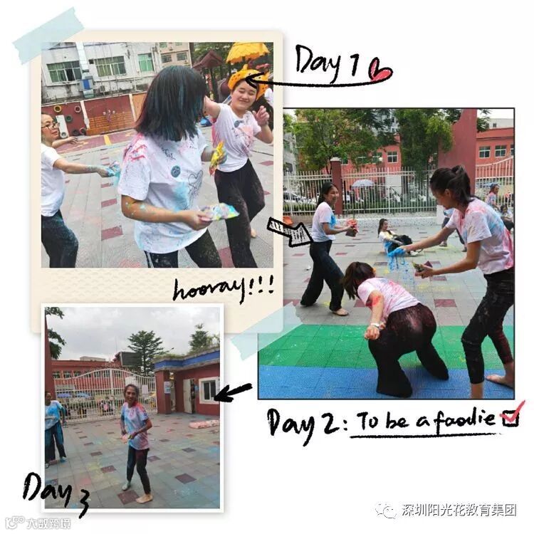 让我们拿起手中的彩粉,把爱注入在彩粉里面,撒在她们的身上,让我的爱像彩虹一样包围着她们。
