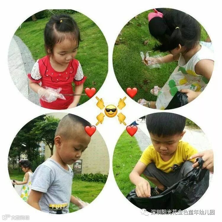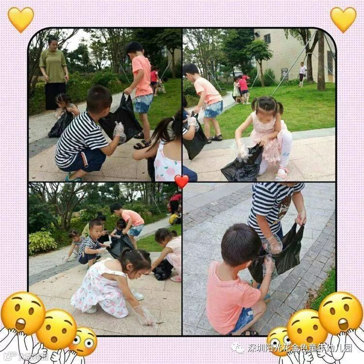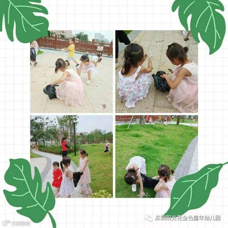 看看我们金色童年幼儿园的小朋友多棒,保护公园环境,从我做起。