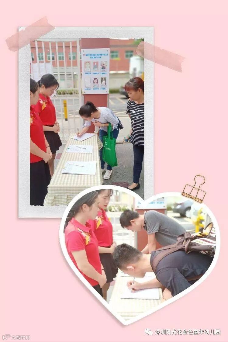 瞧,我们的爸爸妈妈们早早的来到了幼儿园进行签到仪式!