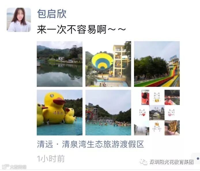 快乐的时光总是短暂的,但要感恩阳光花澜汇居幼儿园给予我们这么好的福利,让我们一路漂荡着,一路欢唱着,一天愉悦又快乐着。因为有阳光花才有快乐的我们,我们骄傲,我们自豪,因为我们很幸运能成为阳光花的一员。相信今天美好的瞬间不仅留在自己的相机里,更留在大家的心里和脑海里。