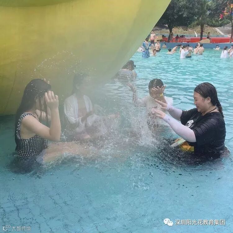 打水仗开始啦!不湿身不过瘾,大家坐在漂流艇,迫不及待地打起水仗,只见池里水花四溅,嬉闹之声不绝于耳。老师们加油哦,前面有更好玩的呢!