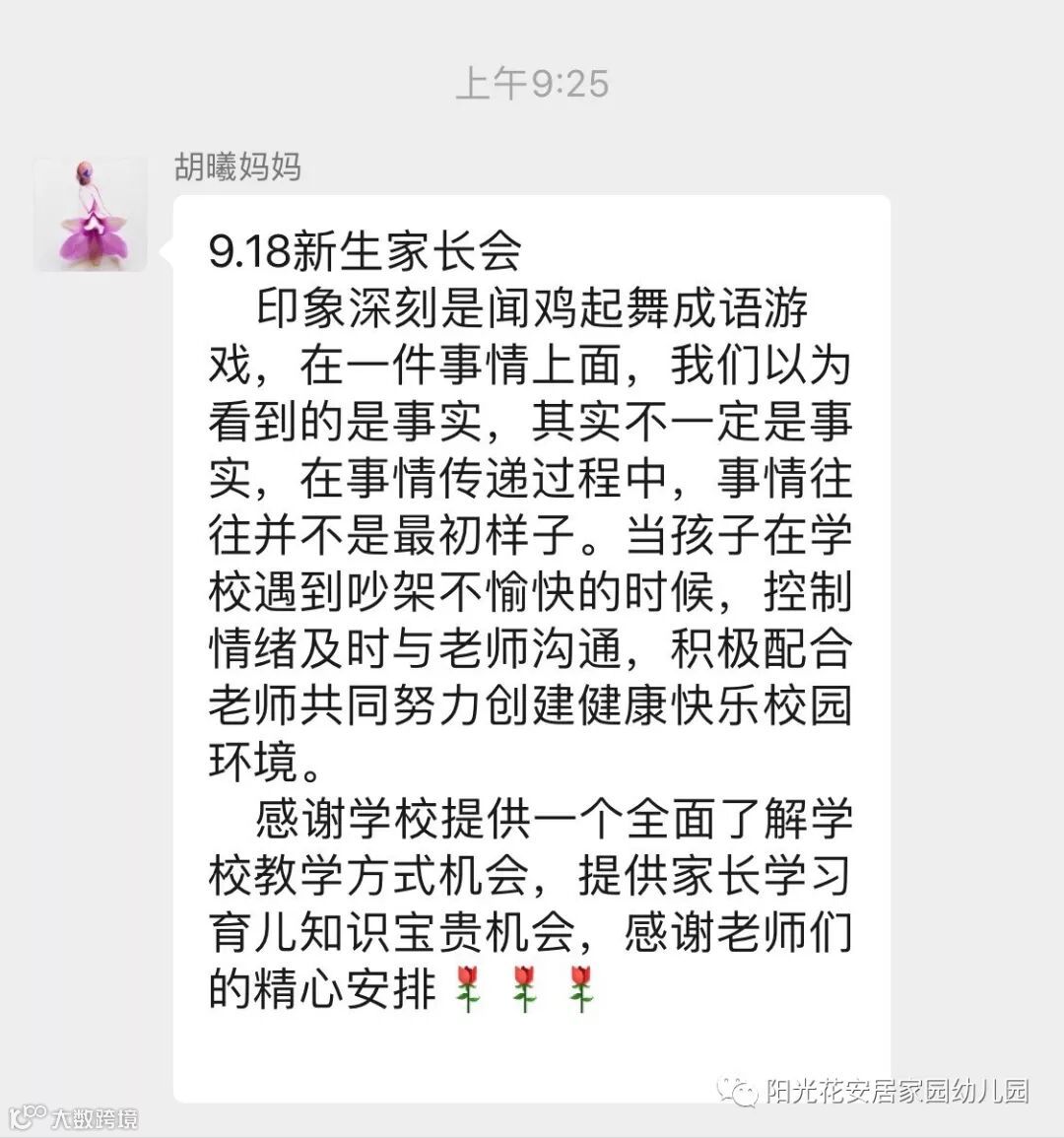 活动开始前,阳光花安居家园幼儿园张小娜园长对现场准时参加本次活动的家长表示了热烈的欢迎和肯定,肯定家长的准时参加,肯定家长的良好行为、肯定家长对教育的重视.