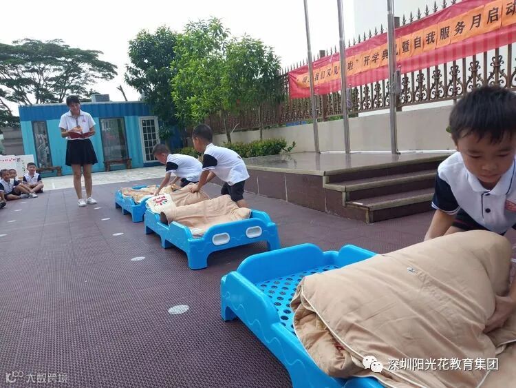 九月份我们开展的素养课程是自我服务月,为了培养培养孩子的自我服务意识,增强孩子各方面的生活技能,借开学典礼的契机,我们组织各年级进行了生活技能比赛。
