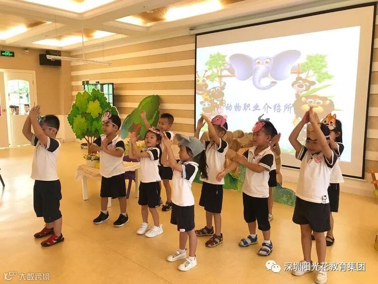 让我们一起来看看阳光D班的小朋友带来的童话剧《动物职业介绍所》。