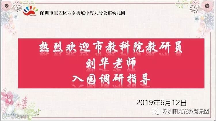 2019年6月12日,我们怀着激动的心情,迎来了深圳市教科院教研员刘华老师莅临阳光花中海九号公馆幼儿园进行调研指导工作。