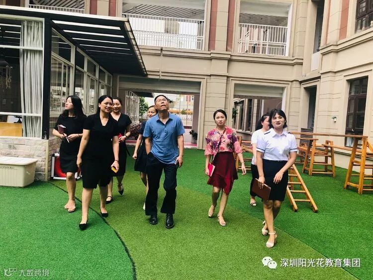 在阳光花教育集团清总、叶华总监、王赟部长、李建惠园长、杜庆玲园长、中海九号公馆幼儿园陈莉琼园长和钟梅兰园长的带领下,刘华老师分别对本园户外环境、班级环境、功能室、公共区域进行了走访,对于园所环境及集团投入表示肯定,对各环境规划的合理性和科学性进行了分析,并提出了宝贵的建议。