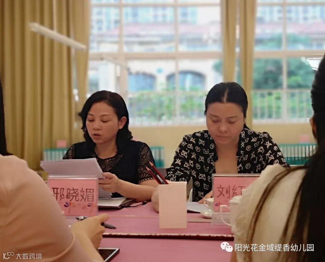 2019年6月11日,深圳市一级幼儿园评估小组刘红喜组长、程蓉督学、李春玲督学、梁小芹督学、龚晖督学、陈秀英督学、陈昱督学一行7人莅临深圳市坪山区金域缇香幼儿园进行市一级幼儿园评估验收工作,出席本次专访的有深圳市坪山区教育局基础教育科吴海波老师、督导室邢晓媚科长、占慧督学、深圳阳光花教育集团王清女士、林丽清总园长、叶华总监、鞠艳园长、李建惠园长以及金色摇篮幼儿园和金地朗悦幼儿园正副园长和部分行政人员及老师。