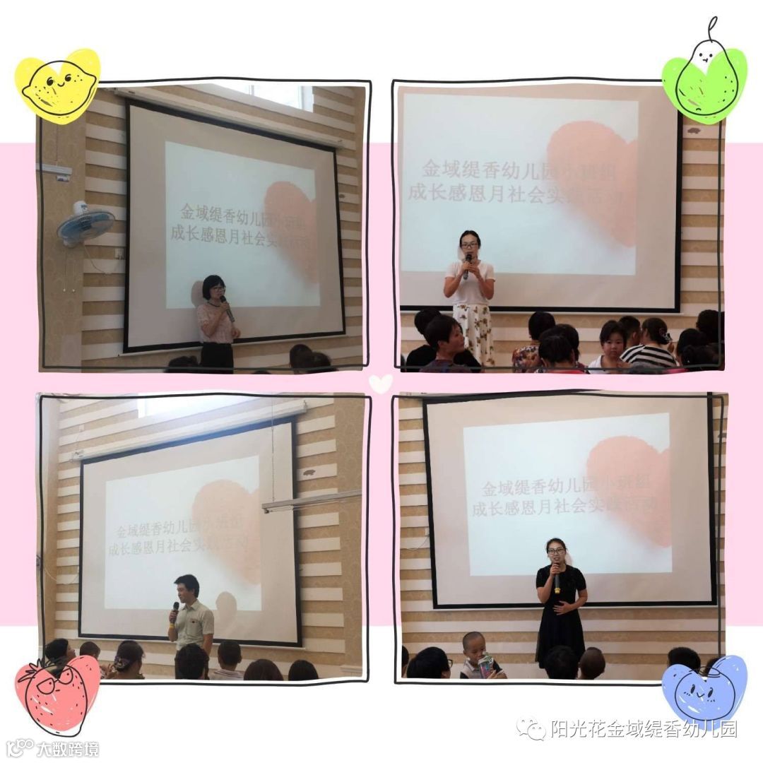 为了培养孩子懂得珍惜别人的爱,懂得感恩,做一个富有爱心的人。2019年5月28日下午3:30,金域缇香幼儿园小班组开展了成长感恩月实践活动,并邀请了孩子的家人来园,让孩子们用实际行动来表达自己的感恩之情。