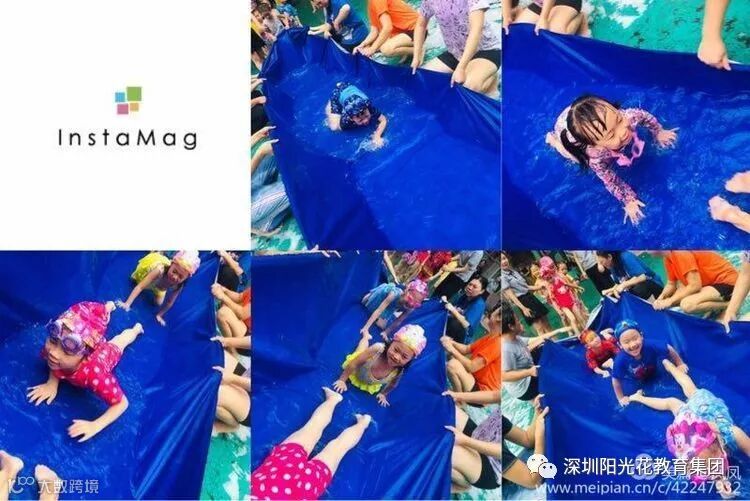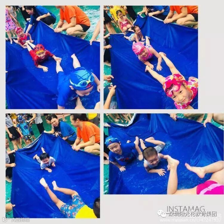 家长们合作,筑起一条小河道,让孩子们在上面跑起来,游起来!