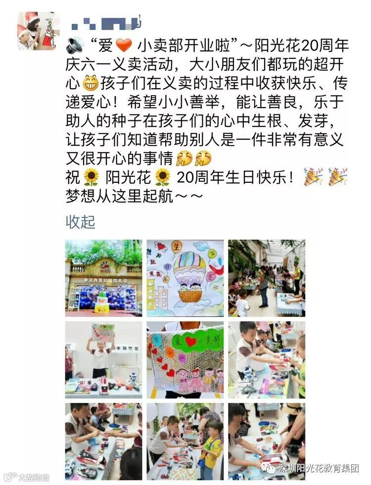 1999年——2019年,阳光花成立20周年啦!为庆阳光花20周年生日快乐,中海九号公馆幼儿园于2019年5月24日开展“爱心集市 爱在六一”娃义卖大型公益活动,祝贺阳光花20周年生日快乐!