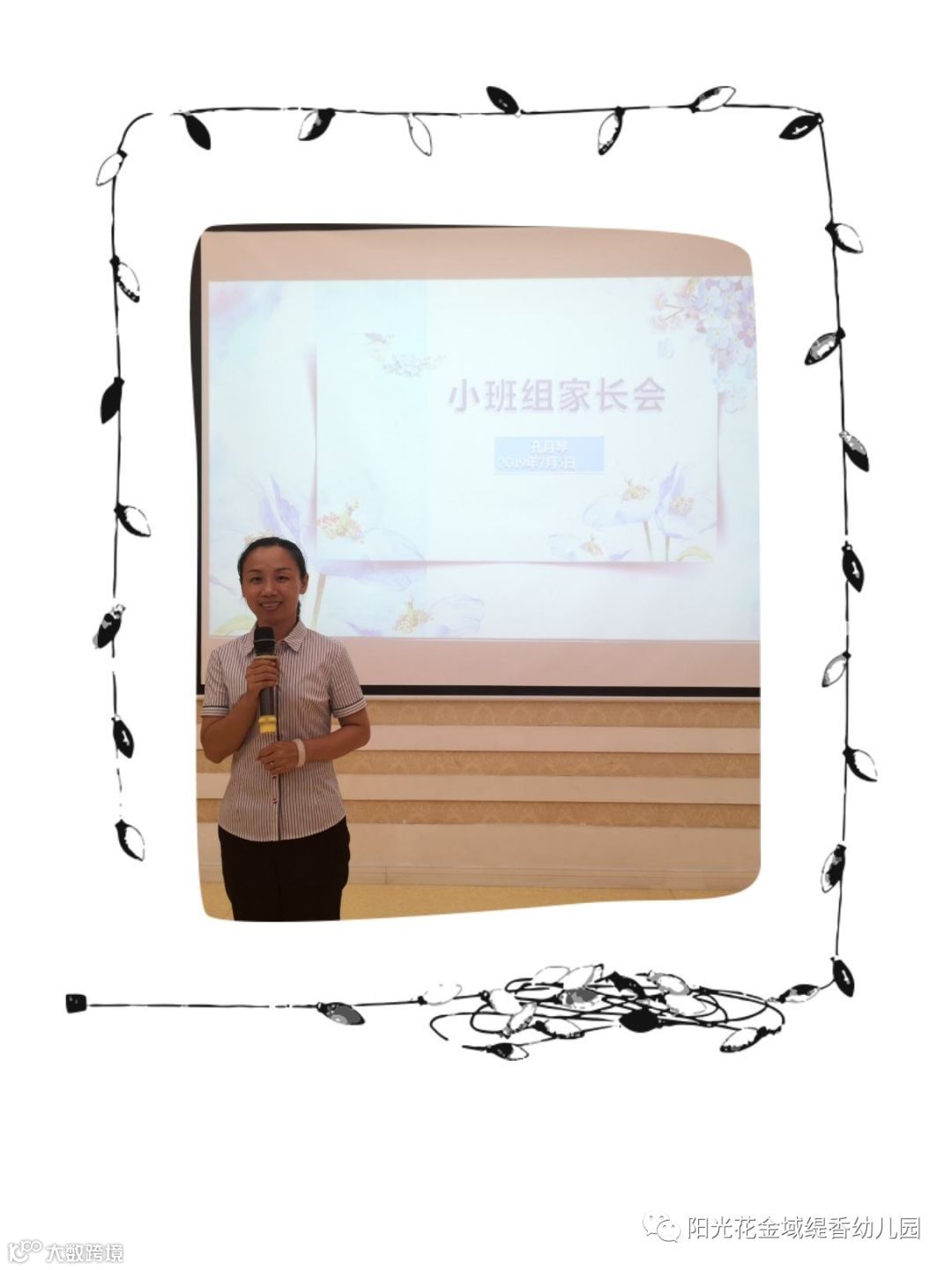 期末悄然而至,一学期的工作已接近尾声,为了让家长对阳光花金域缇香幼儿园的教育理念、工作计划等有进一步的了解与认识,促进彼此的了解、认识、信任与合作,加强幼儿园与家长的沟通,真正达到家园携手共育,促进幼儿成长。金域缇香幼儿园在2019年7月5日晚上19:00点,召开了小班组家长会,一场充满爱的温暖邂逅由此展开。