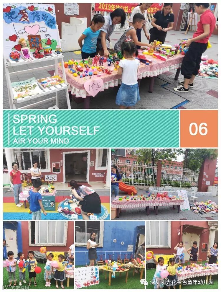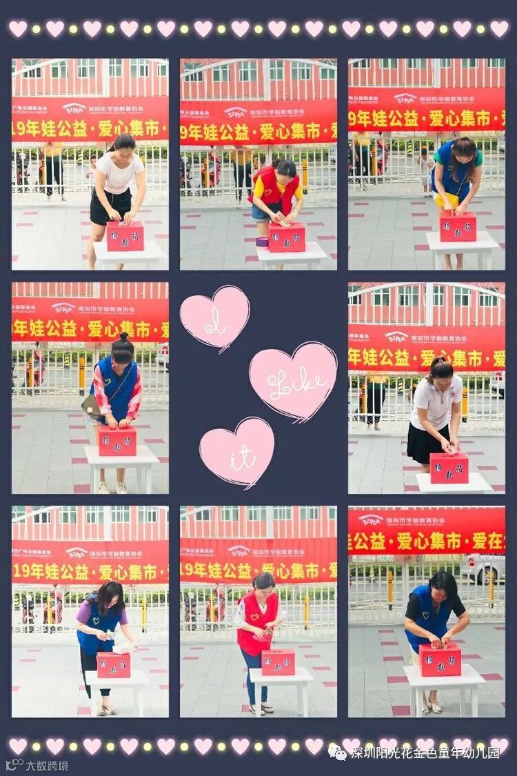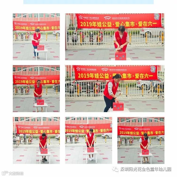 为培养幼儿关心他人、乐于奉献的道德品质和强烈的社会责任感,由深圳市学前教育协会、深圳市广电公益基金会 联合阳光花金色童年幼儿园发起组织全园家长和幼儿举行“让爱传出去●加入娃义卖”大型爱心公益义卖活动。每个孩子变成“小店家”,卖出自己心爱的物品,资助偏远山区的贫困孩子,奉献自己的爱心!