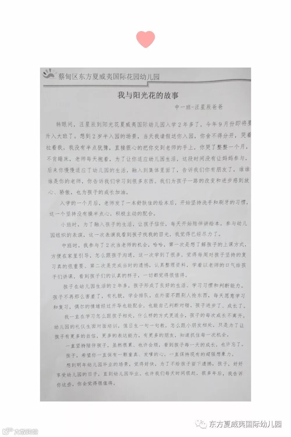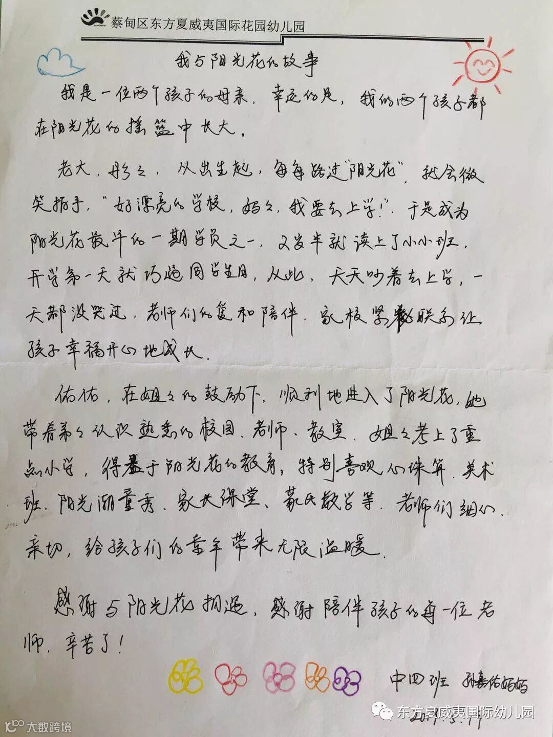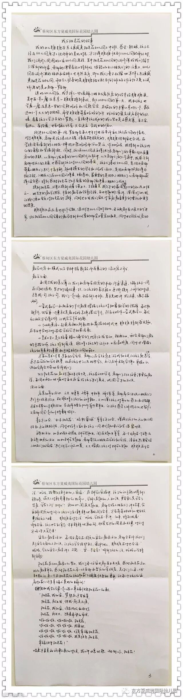 在阳光花生日来临之际,东方夏威夷国际幼儿园的家长朋友们为庆贺这盛大的喜事,纷纷执笔书写“我与阳光花的故事”,分享我们的成长时光!