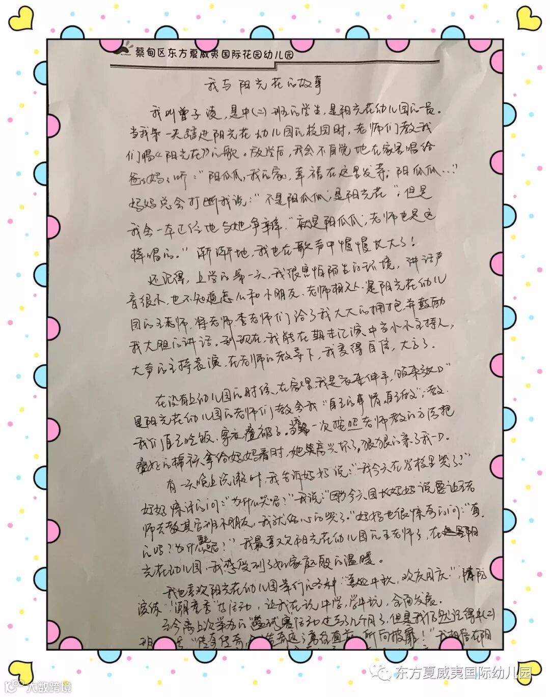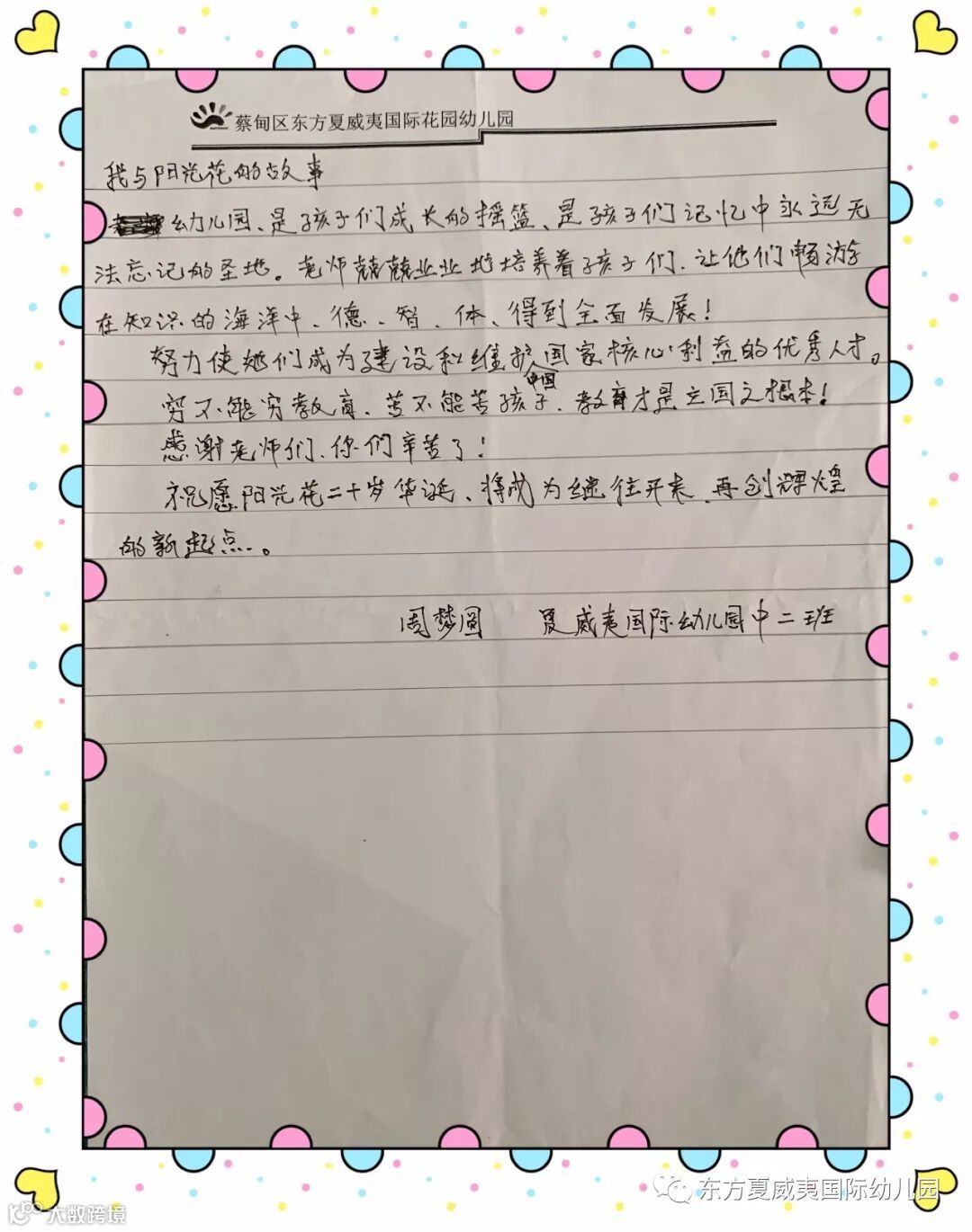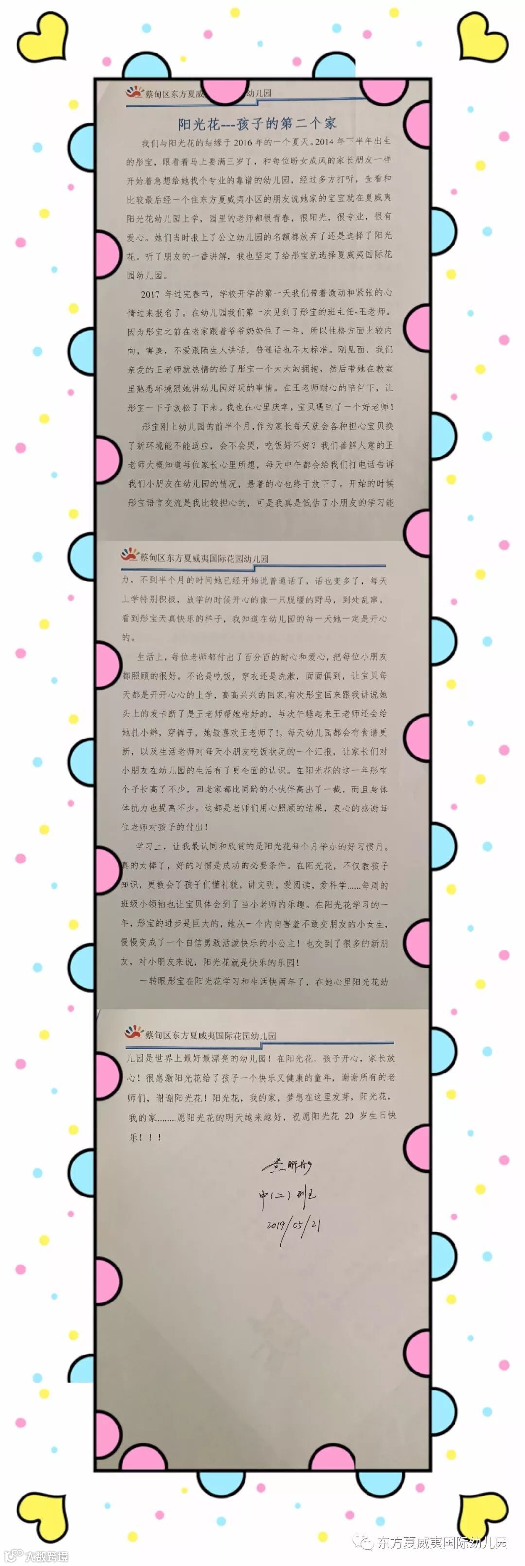 在阳光花生日来临之际,东方夏威夷国际幼儿园的家长朋友们为庆贺这盛大的喜事,纷纷执笔书写“我与阳光花的故事”,分享我们的成长时光!