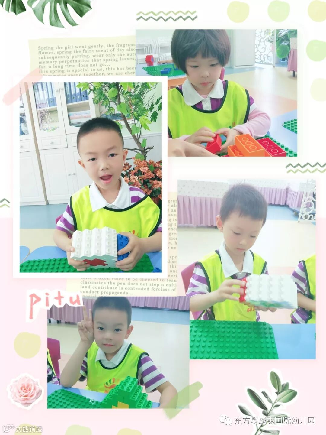 阳光下一颗种子在发芽,开出美丽的阳光花!潮宝们在卡巴老师的带领下,用色彩纷呈的积木拼出了一朵朵美丽的花儿。从一块积木,到一朵朵花,潮宝们用认真和祝福把花儿浇灌长大,梦想也从这里发芽!一起来看看宝贝们的精彩瞬间吧!