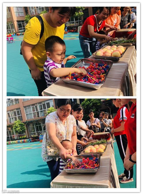 孩子们和家长一起,敲敲小鼓,一鼓作气;摸摸小葱,聪明伶俐;摸摸苹果,平平安安;领取一颗棒棒糖,愿我们的宝贝们身体棒棒学习棒棒!