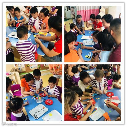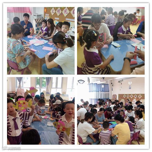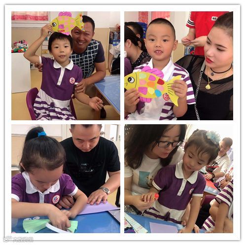 在老师的引导下,孩子们在爸爸妈妈的陪同下尝试自己动手,制作出一个个美丽的手工。