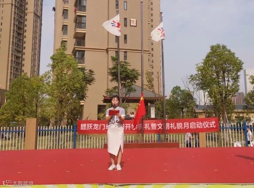 庄严的升旗仪式,拉开了开学典礼活动的序幕。瞧!雄赳赳气昂昂的升旗手闪亮登场了!