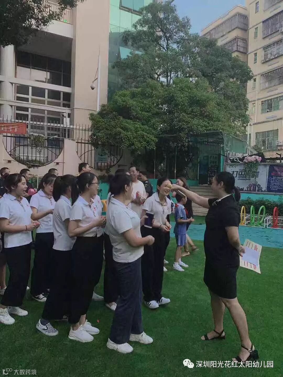 游戏规则:在指定区域内,行政人员戴上眼罩,听从团队的指挥向前闯关。