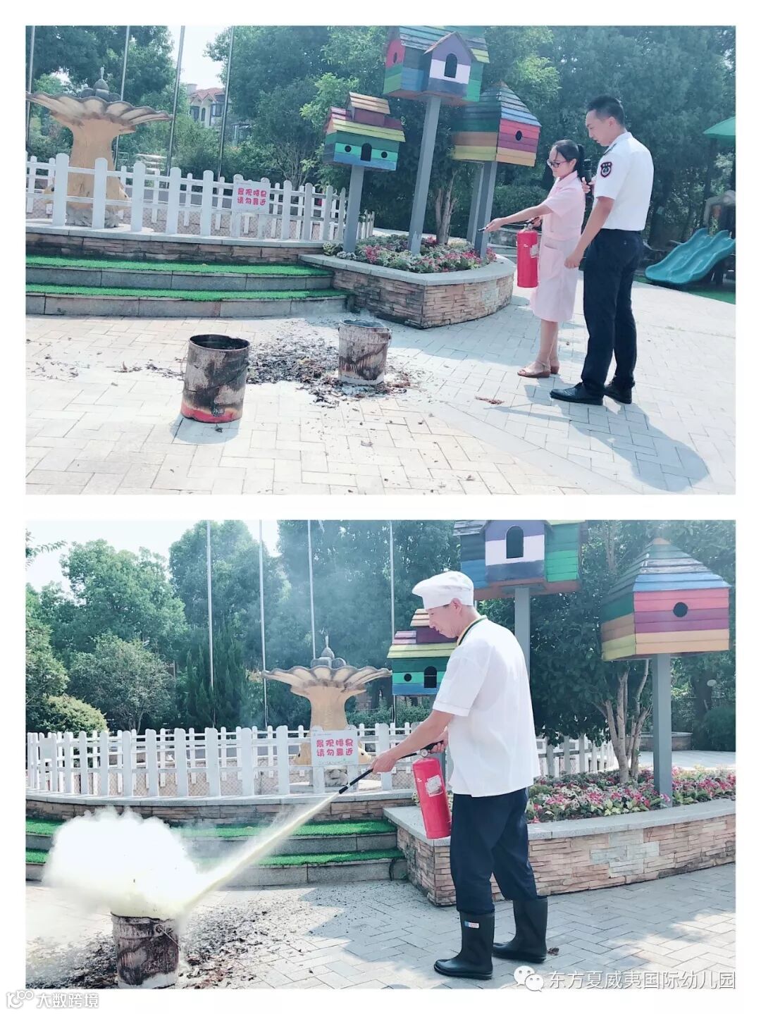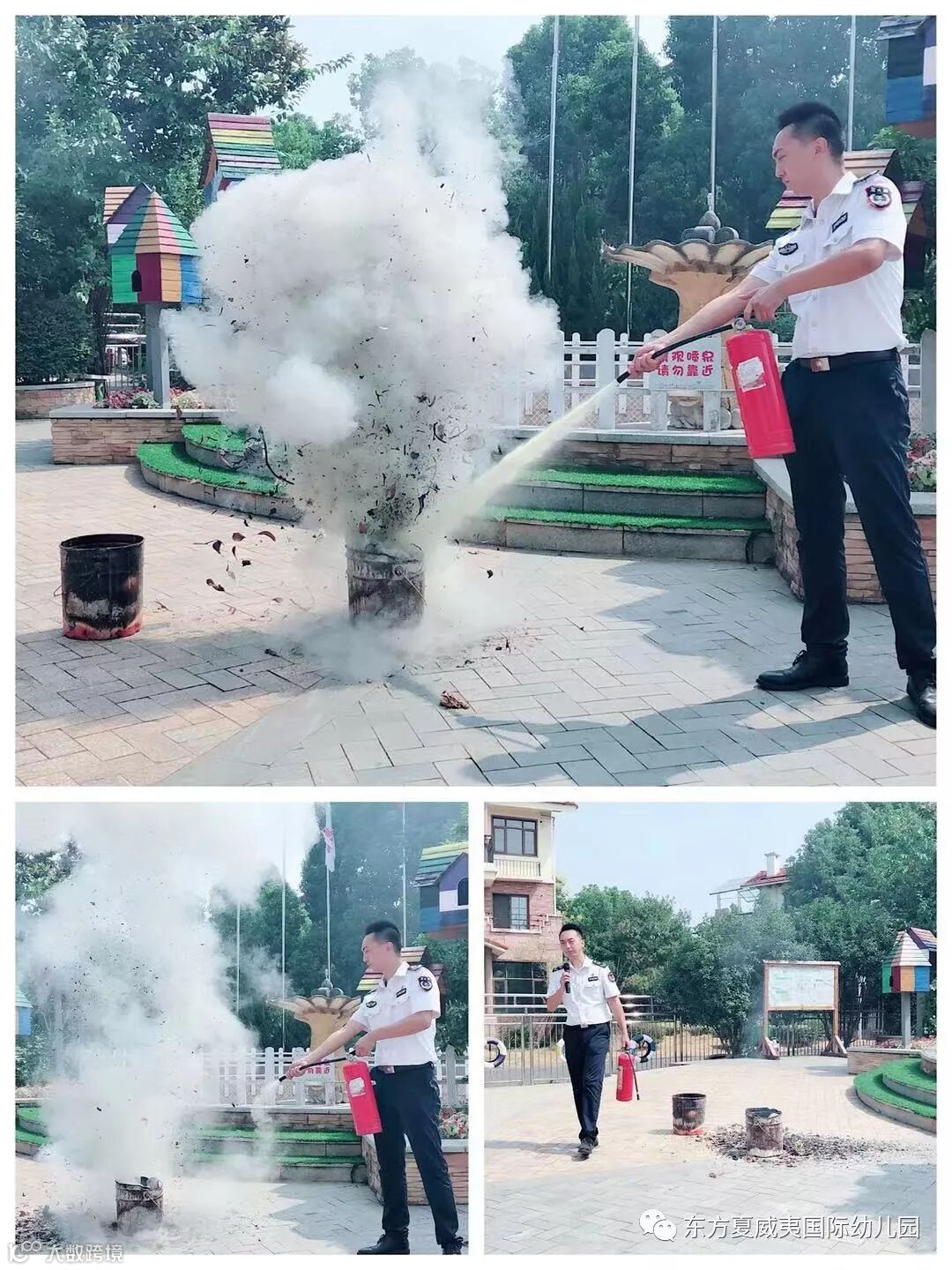 安全工作重于泰山,为了进一步加强幼儿的消防安全意识,提高师生防范自救能力,针对大家面对突发火灾情况下,能够安全快速确保师生的生命安全,有序的逃离到安全地带,同时在面临突发安全事故时快速撤离的应变能力,2019年9月12日,蔡甸区东方夏威夷国际花园幼儿园开展了安全教育之“防安全隐患·保校园安全”消防演习暨防恐防暴演习主题活动。
