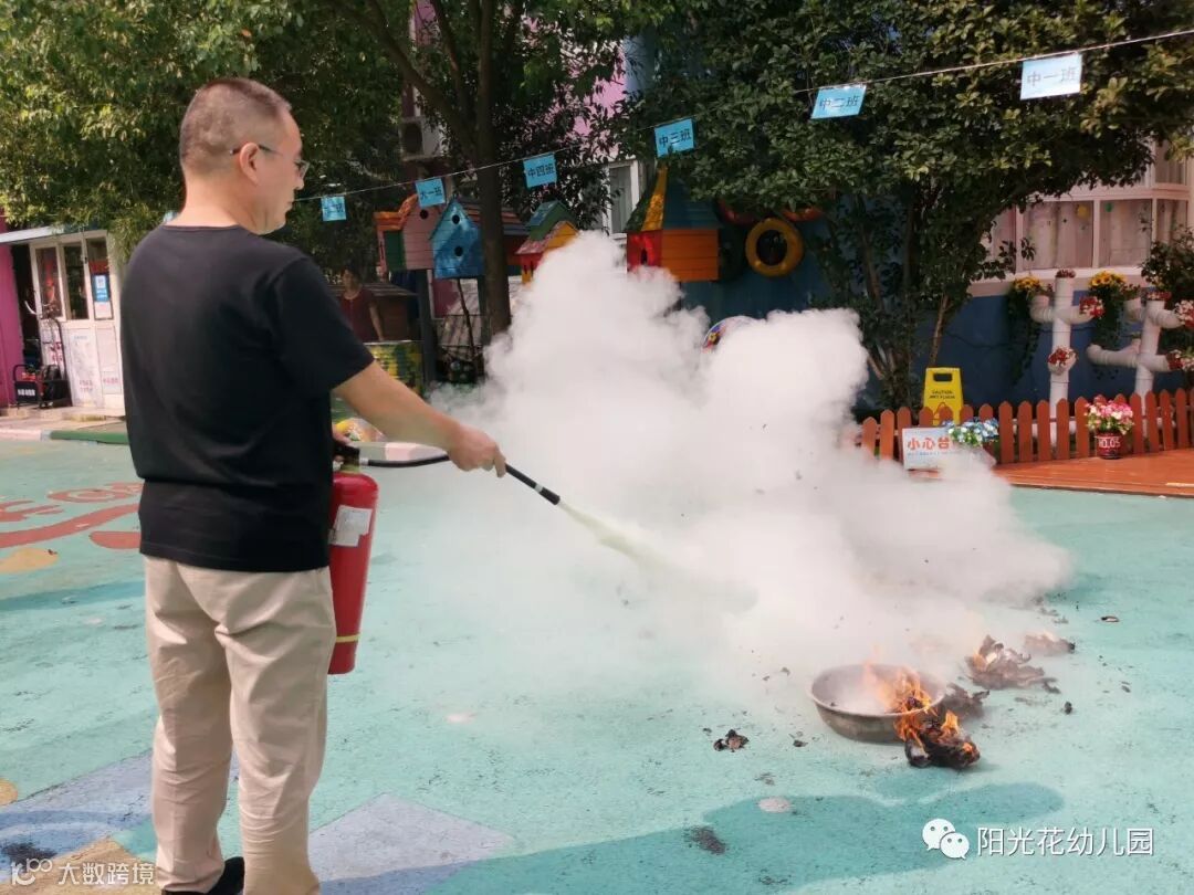 活动最后,后勤园长方世景演示了用灭火器灭火的正确操作方法。