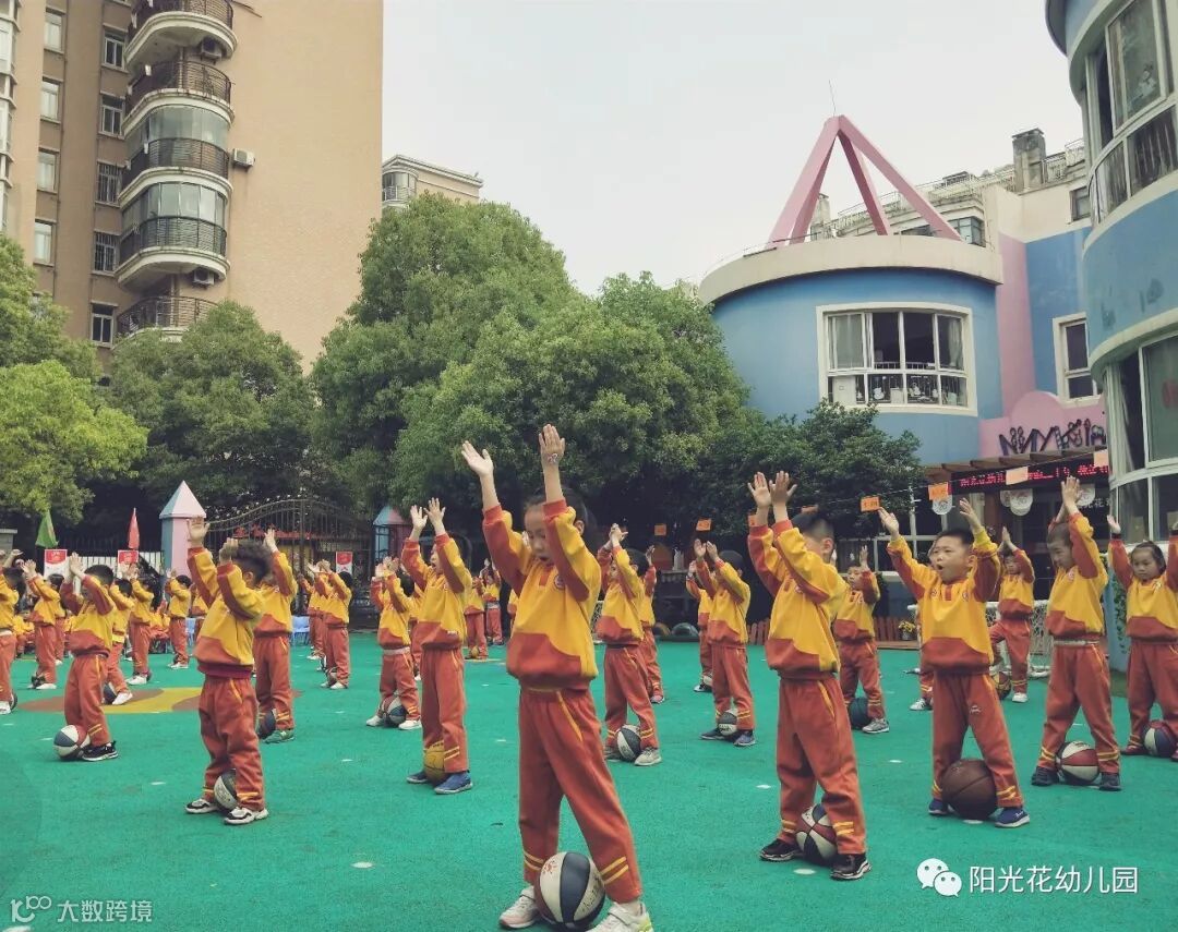 在开始比赛前,宝贝们不忘给阳光花送上祝福。宝贝们,相信有了你们的祝福,阳光花的明天一定会更加辉煌!送完祝福之后,早操比赛正式开始了,伴随着欢快的音乐节奏,大班的小朋友们在老师的带领下跳着动感的早操孩子们十分投入、整齐划一地做着每一个动作。