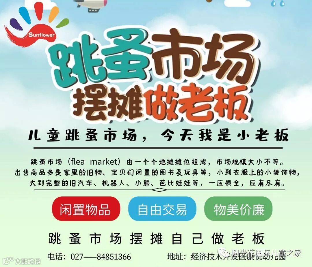 “跳蚤市场”是欧美等西方国家对旧货地摊市场的别称。市场交易过程乐趣无穷,既获得了物美价廉的物品,提高物品使用率,减少资源浪费,又培养了理财的能力,促进人与人之间的交往,深得人们的喜爱。豆逗幼儿园将“跳蚤市场”引入幼儿的活动之中,在活动中培养孩子们的语言表达能力、组织能力、应变能力、理财能力;提高孩子们社会实践活动能力。让孩子们在交易中增长才干,学到本领。