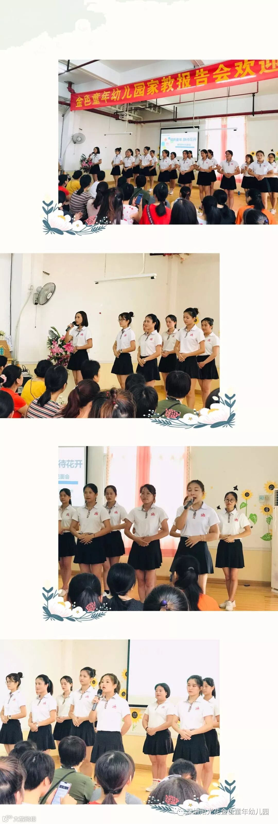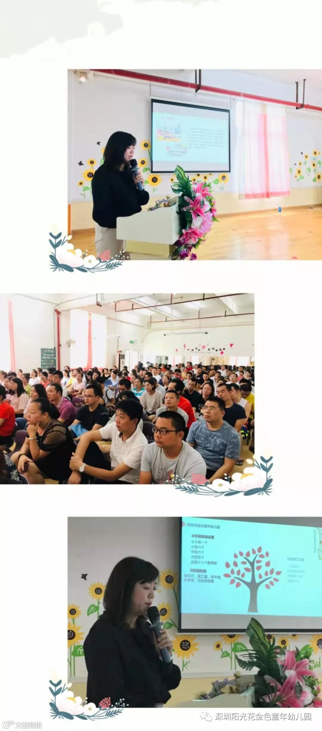 首先,罗园长为新生家长播放了集团的宣传片,再通过照片为大家介绍了集团的文化理念,园本特色课程等,也进一步介绍了金色童年幼儿园的基本情况。让家长多角度全方位的对孩子在幼儿园的学习和生活有了更深刻的了解。
