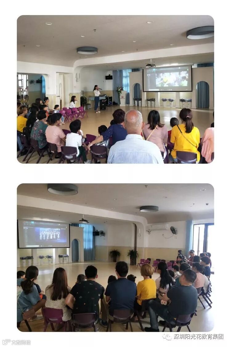 随后通过观看阳光花集团文化片和九号公馆幼儿园短辑了解集团文化和本学期幼儿活动剪影。