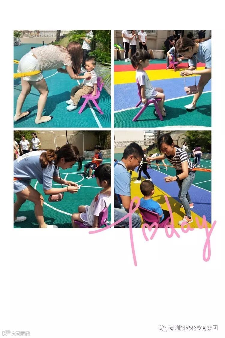 孩子们坐在凳子上给爸爸妈妈加油,看我们的爸爸妈妈们用尽全力为孩子们贴上贴纸,力气大的妈妈无比给力,一下就贴完了呢。