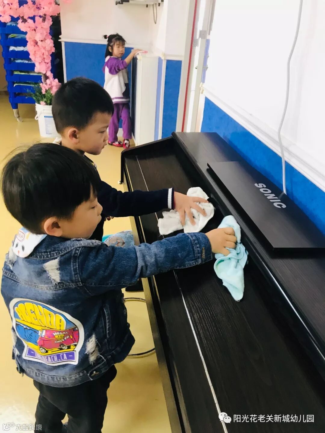 瞧!小班的小朋友们虽然是幼儿园里最小的,但也都撸起袖子,拿起抹布,一个个干劲十足,可棒啦!