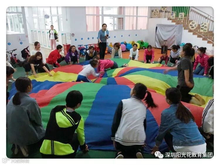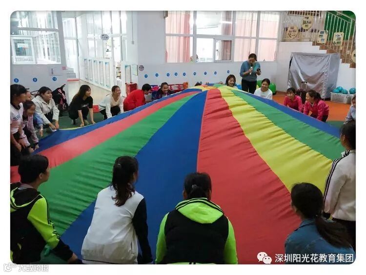 本次研讨了十种彩虹伞的各种玩法,以培养幼儿锻炼价值,引导老师们根据不同年龄段,孩子们的发展水平运用、创编不同的彩虹伞游戏。