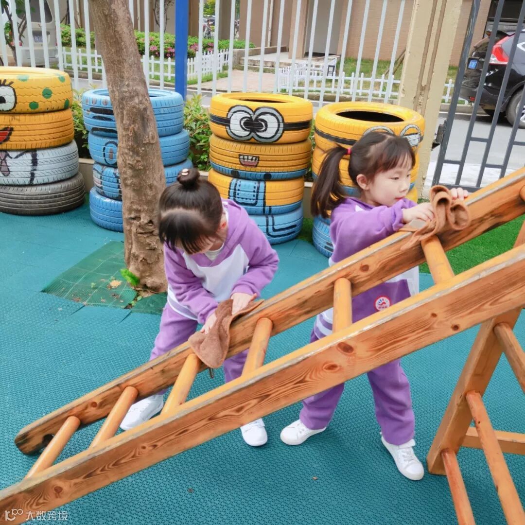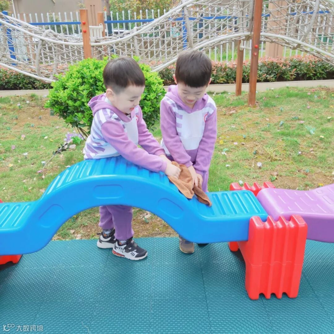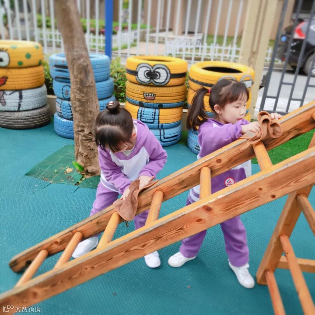 小朋友们亲身参与到劳动中,擦柜子、整理玩具、书本、整理毛巾……角色扮演各种职业,体验工作的辛苦,感受劳动带来的快乐。老师还请幼儿回家后帮忙收拾餐具、打扫房间等做力所能及的家务劳动。 结合幼儿年龄特点开展谈话活动,潜移默化的培养幼儿的劳动意识,引导孩子动手做自己力所能及的事。