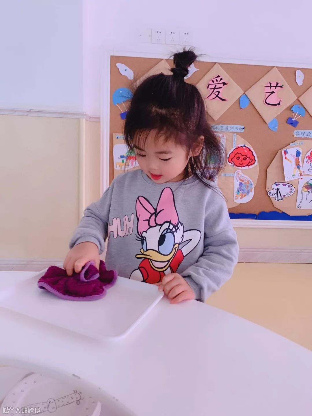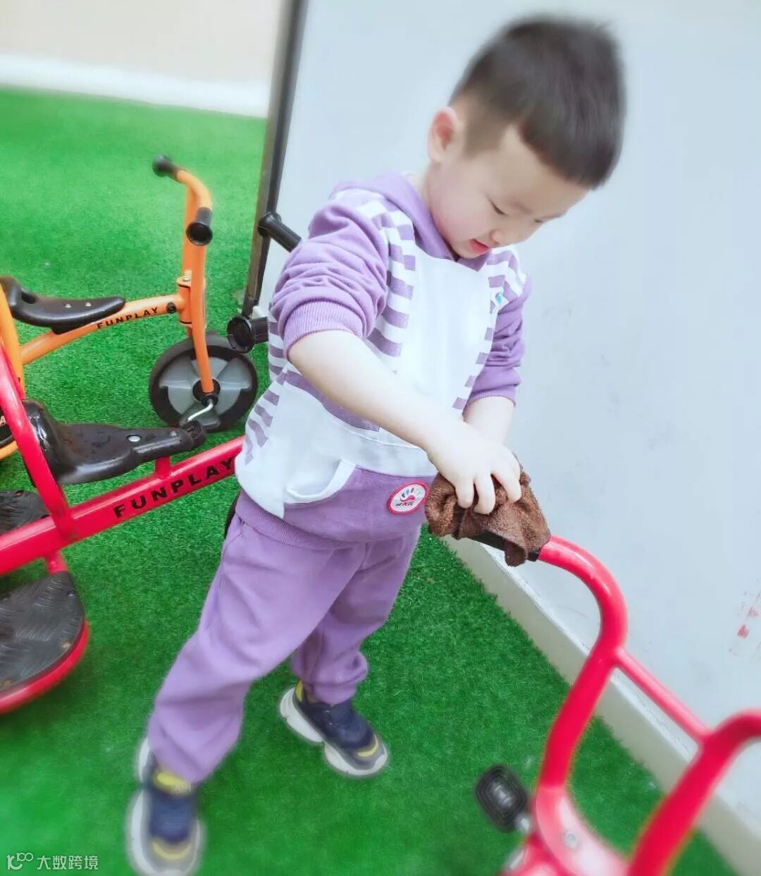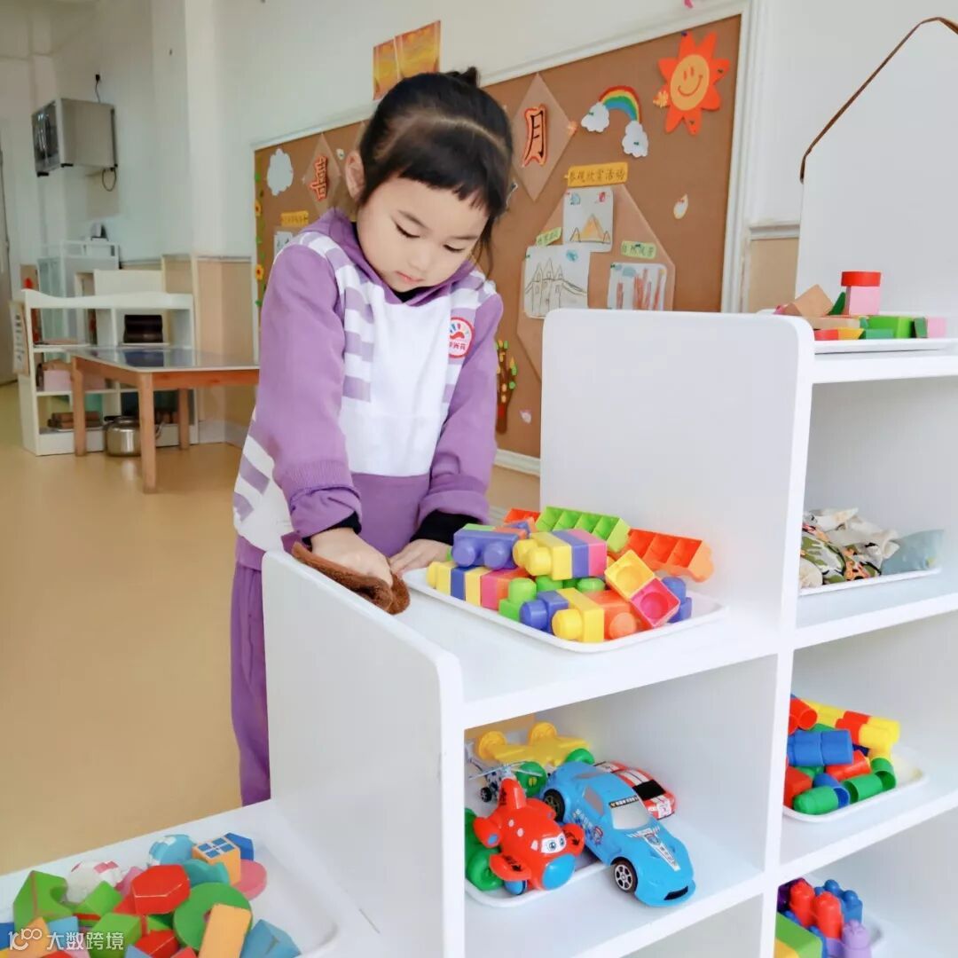 小朋友们亲身参与到劳动中,擦柜子、整理玩具、书本、整理毛巾……角色扮演各种职业,体验工作的辛苦,感受劳动带来的快乐。老师还请幼儿回家后帮忙收拾餐具、打扫房间等做力所能及的家务劳动。 结合幼儿年龄特点开展谈话活动,潜移默化的培养幼儿的劳动意识,引导孩子动手做自己力所能及的事。