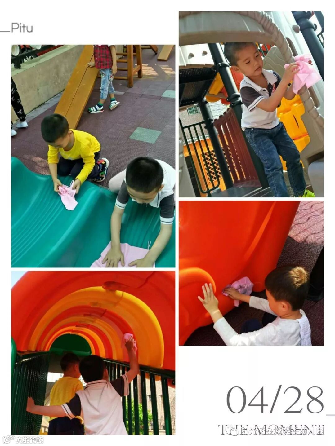 活动二:瞧~各班老师带领孩子,把我们的玩具擦洗的干干净净。