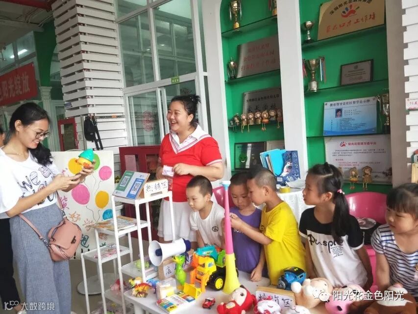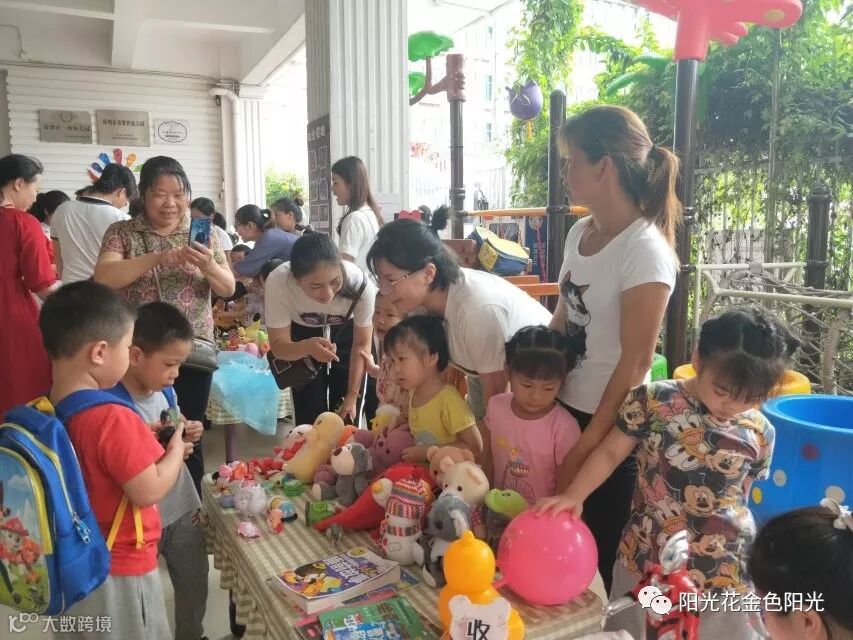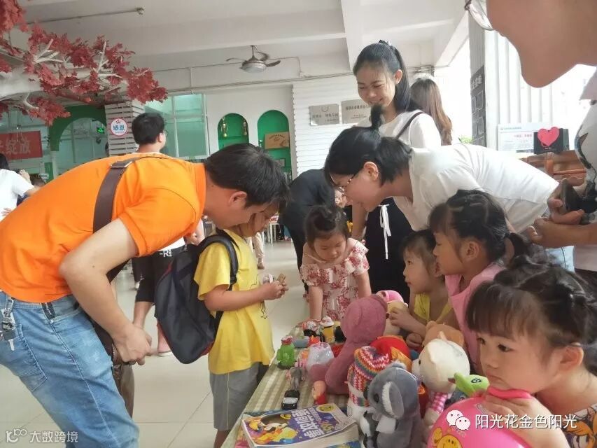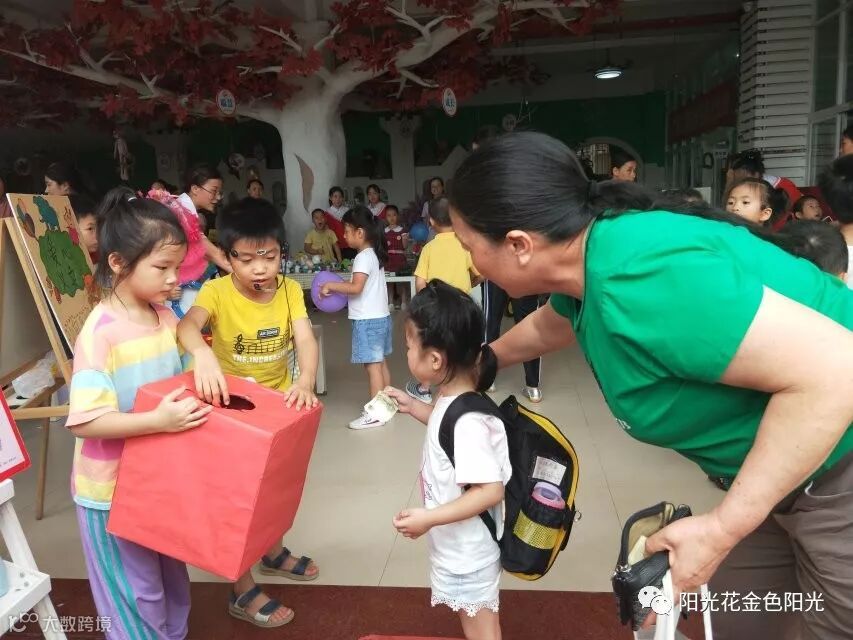 5月28日、5月29日下午,金色阳光幼儿园人潮涌动,热闹非凡。家长和小朋友纷纷将家中闲置八成新以上的玩具、图书、文具等捐赠出来并参加幼儿园组织的义卖活动。让我们一起利用资源、资助做出一次贡献。义卖现场热烈而温馨,义卖品琳琅满目,有文具、图书、玩具、日用品等,老师们还精心制作了属于自己班的“招牌”。活动还没开始,叫卖声不绝于耳,孩子们渴望的“集市”开始营业啦!