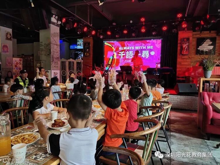 在家长义工的陪同下,保安叔叔的保驾护航,宝贝们怀着激动的心,徒步走了15分钟的路程,奔向期待已久的音乐餐吧