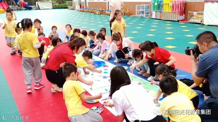 我们小朋友们认真的画,仔细的画,衣服和脸上也有了不一样的色彩。