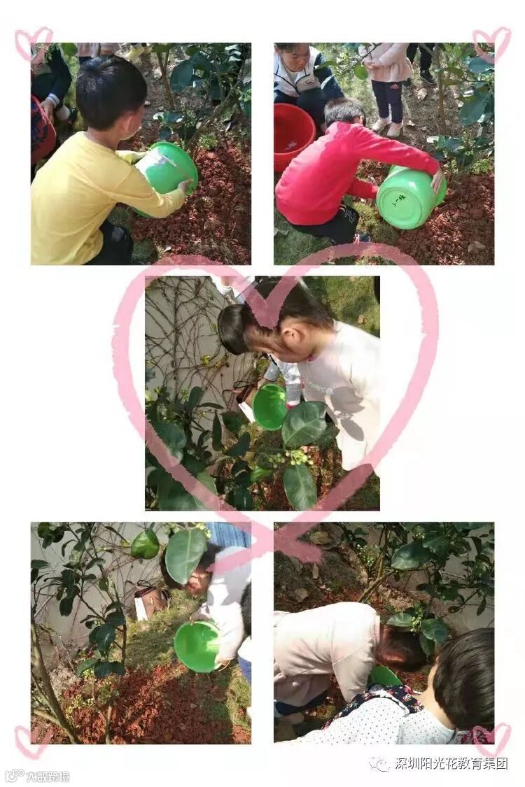 喝吧!喝吧!快快长大!孩子们用充满爱心的行动表达了他们对花草的爱护和种植!