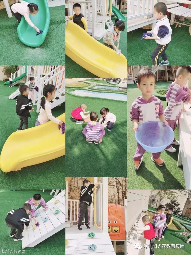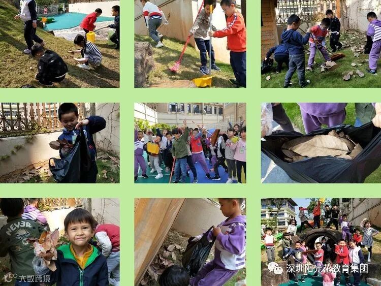 活动二:既然我们知道了那么多关于植树的益处,那么从我做起,从大家做起,从阳光花中海九号公馆幼儿园园内做起,出发吧!带上工具,小班宝贝捡落叶,还可以用来做美术作品和标本呢,中班的宝贝清理花坛,大班的哥哥姐姐把园内擦的干干净净的!为你们点赞👍