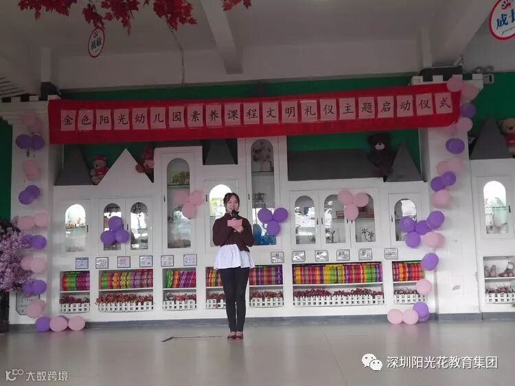 文明是一阵清风,爽朗了人们的心情;文明是一盏灯,照亮了前程的光明;文明是一场雨,滋润了干涸的心灵💗。阳光花总部金色阳光幼儿园2019年3月5日,开展素养课程《文明礼仪》主题月启动仪式。
