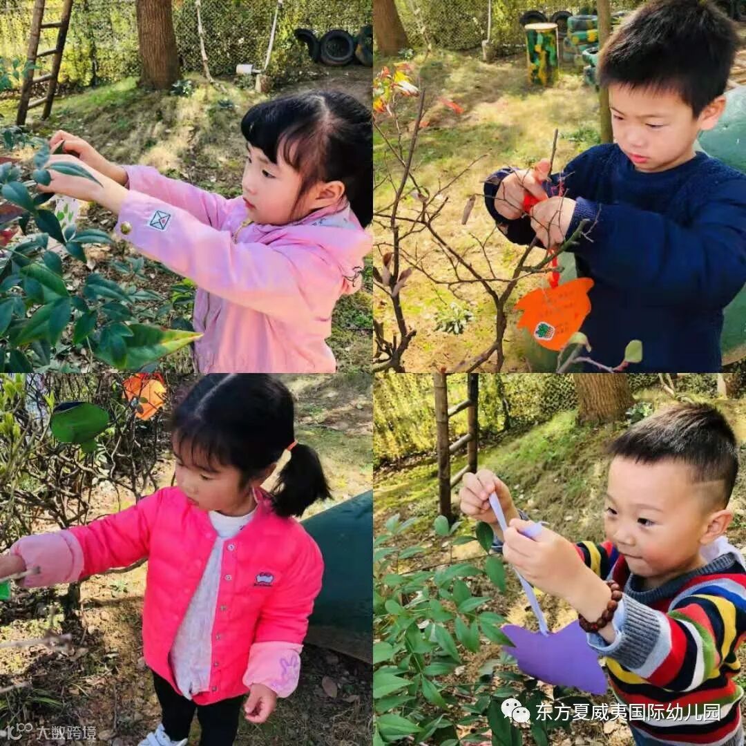 中班组的哥哥姐姐们纷纷将自己与爸爸妈妈一起制作的护树宣言卡片挂在了自己想要保护的大树上,希望大树能够健康生长!