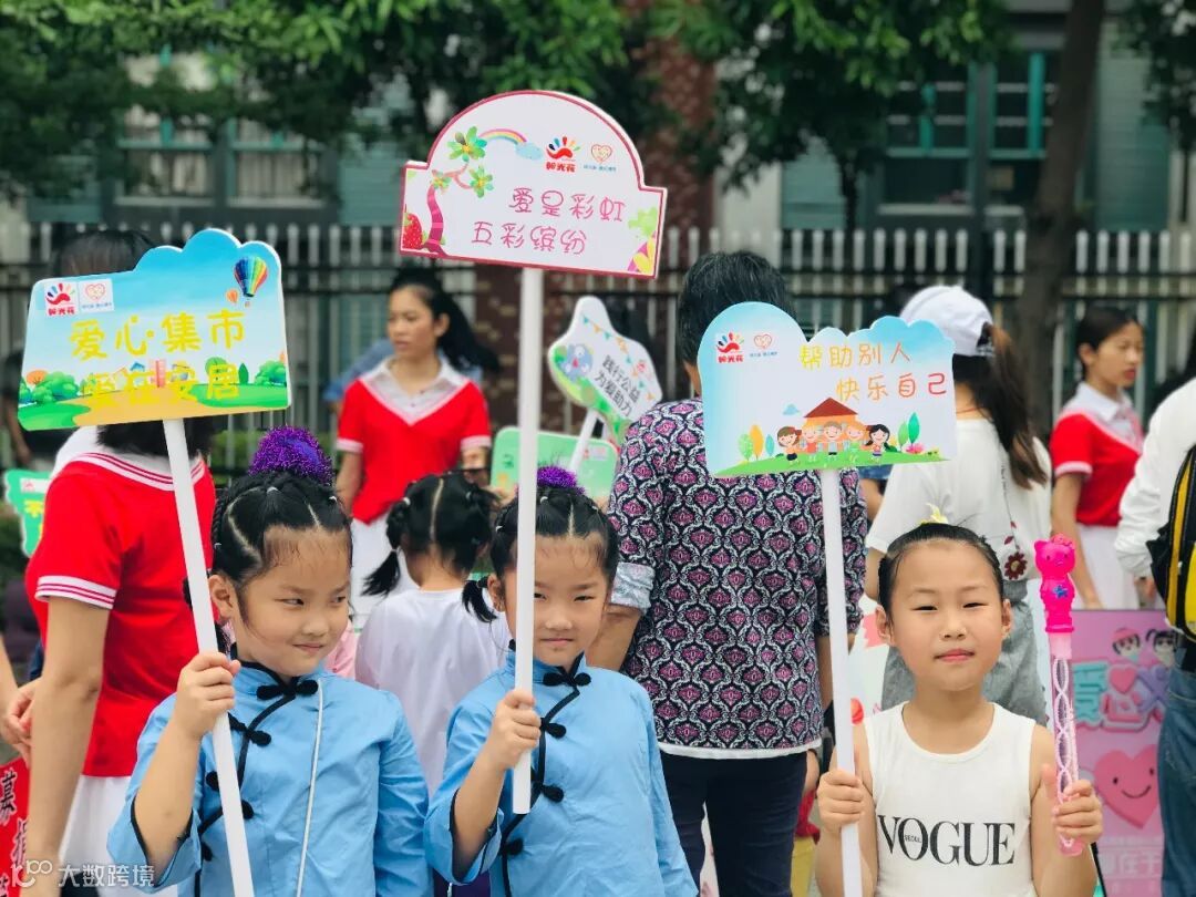 各班级纷纷摆好摊位,拿上道具,开始了班级的义卖。现场呦呵声连绵不断,大家用自己制作的爱心招牌吸引客人的注意,在小区游戏的小弟弟小妹妹,以及哥哥姐姐都前来助力,现场热闹非凡。