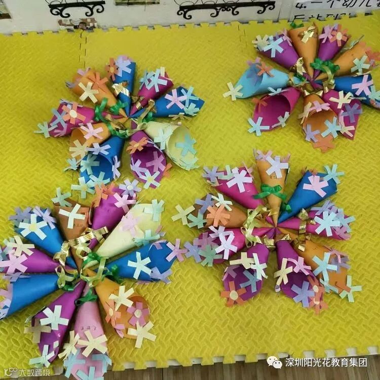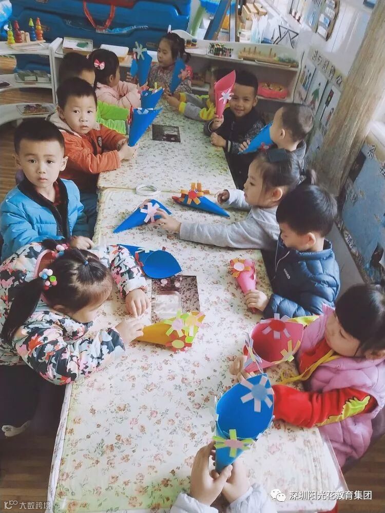 “我们很认真的在为妈妈制作漂亮的花束哟💐”