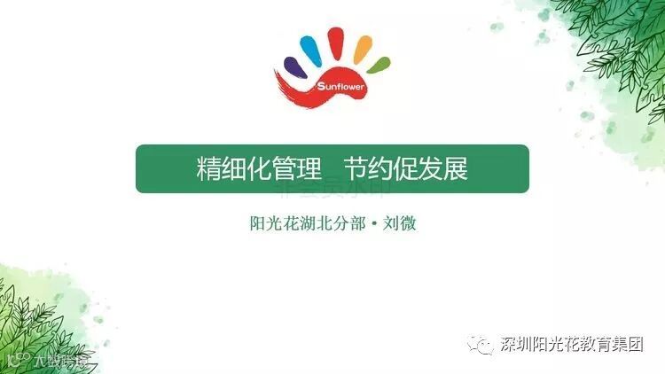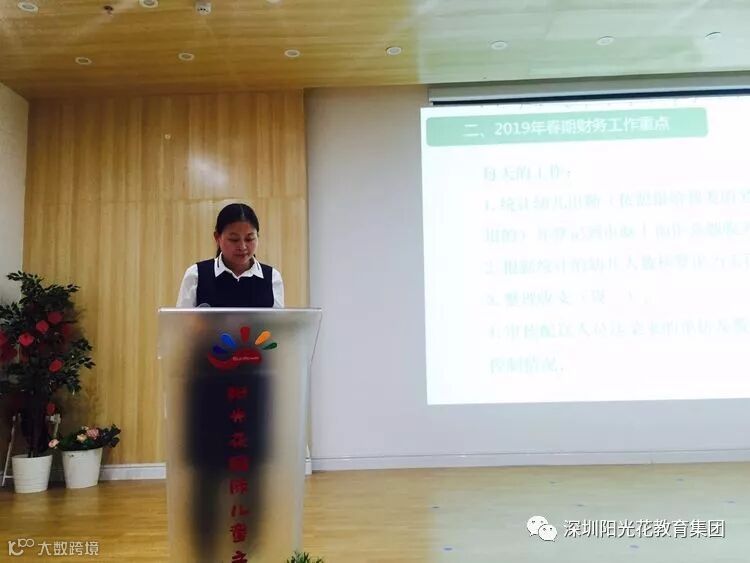 最后深圳阳光花教育集团湖北分部财务总监刘微全面详细地进行了2019年三月财务工作报告。她以精准的数据,直观简洁的图表全面梳理了湖北分部各园的财务状况。透过数据,本次汇报还对后勤采买管理、教育教学采购、各类支出明细做了简要分析,统一湖北分部财务工作的思路及目标——节约成本,善用资源,统筹管理。