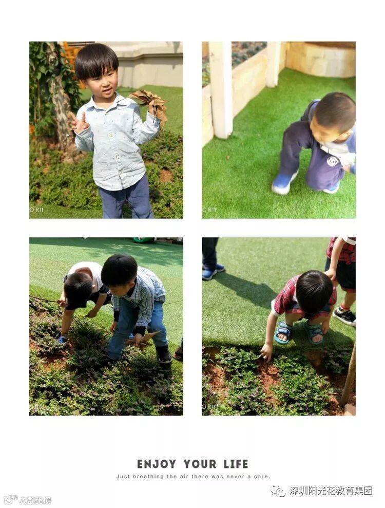 自从种植了树,我们中班的小朋友经常都到种植区,观察,浇水,除草。