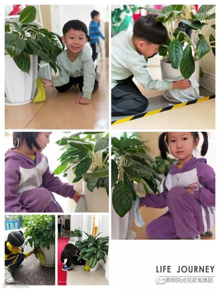 当天老师还带领小朋友一起擦了花坛。