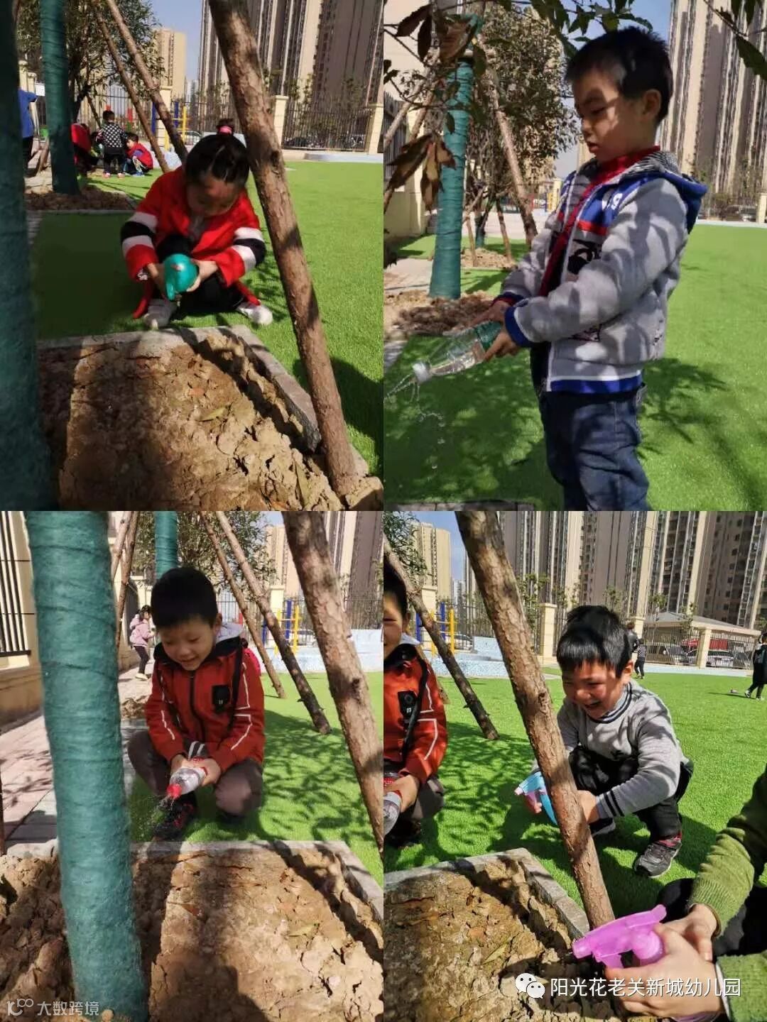 阳光明媚的早晨,老关新城的宝贝们带着盛水的工具来到了幼儿园,乘着春风,迎着阳光,在老师的组织下宝贝们一起给小树浇水,看看宝贝们认真浇水的剪影吧!