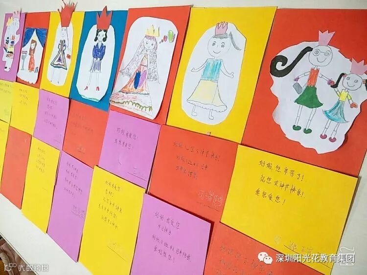 小朋友把自己想对妈妈、奶奶说的话请老师帮忙写在了上面贺卡上,还认认真真的画着一自己心中的女神。